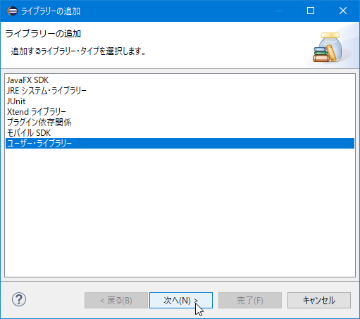 「ユーザー・ライブラリー」を選択して、「次へ」ボタンを押下。
