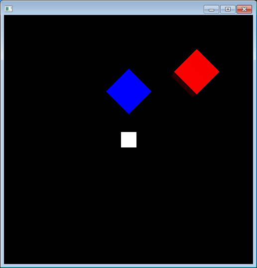 以下に座標変換を利用するサンプルプログラムを示す。サンプルでは以下の3つのオブジェクトを描画している。