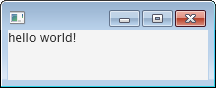 最初にコードを見ておくとFXMLの利用方法やイメージの理解が早いと思うので、今回はサンプルプログラムから見ていく。サンプルでは「hello world!」を表示するだけのウィンドウを出力する。
